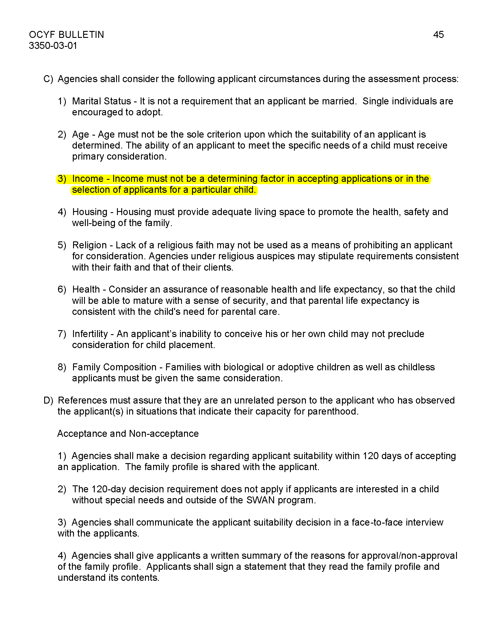 OCYF Bulletin #3350-03-01